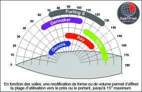 Le Furling S : il s'agit d'une voile "mixte" gennaker/spi asymétrique: un asymétrique à guindant étarqué pour les allures 70/130° qui s'utilise avec un emmagasineur.