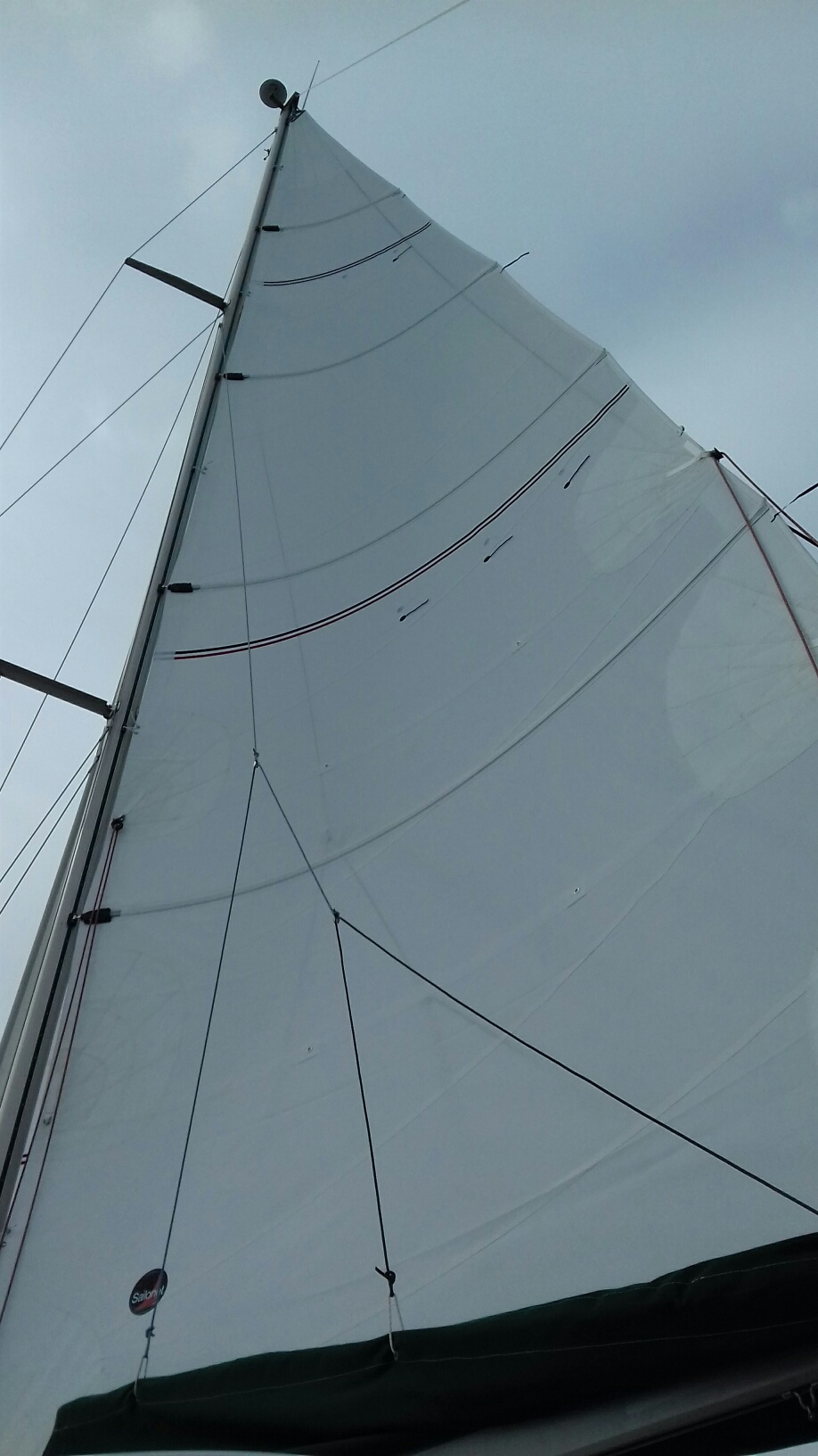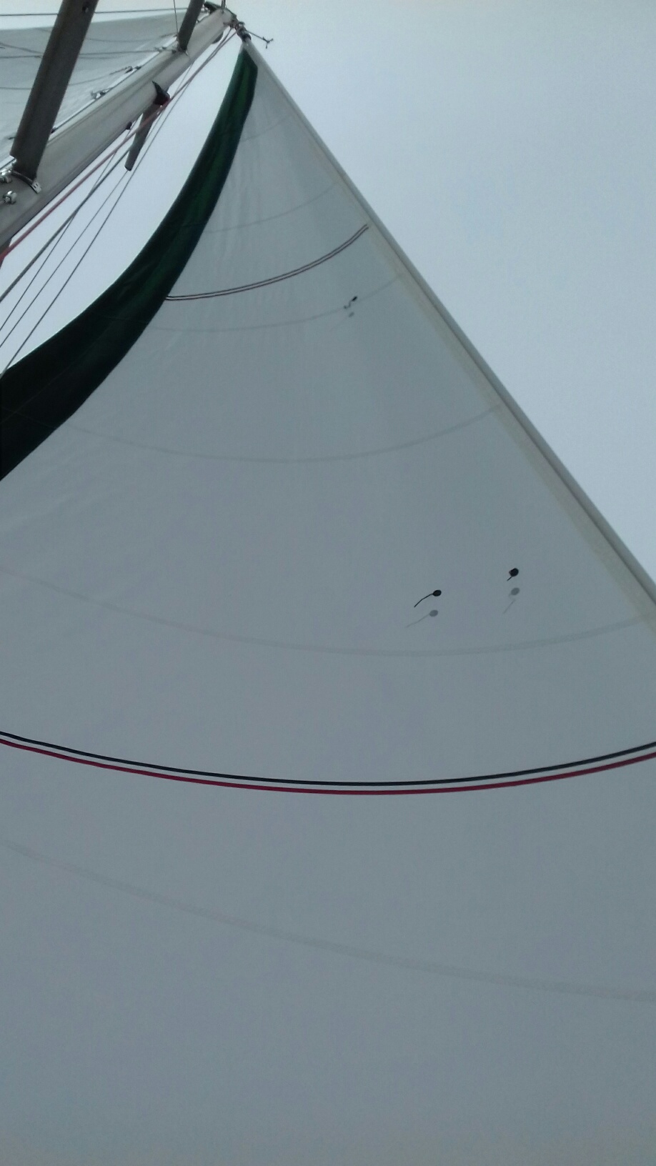 Vous allez trouver ci-joint la photo de ma voile (un ris) prise lors de notre essai par vent musclé force 4-5 rafale 6.