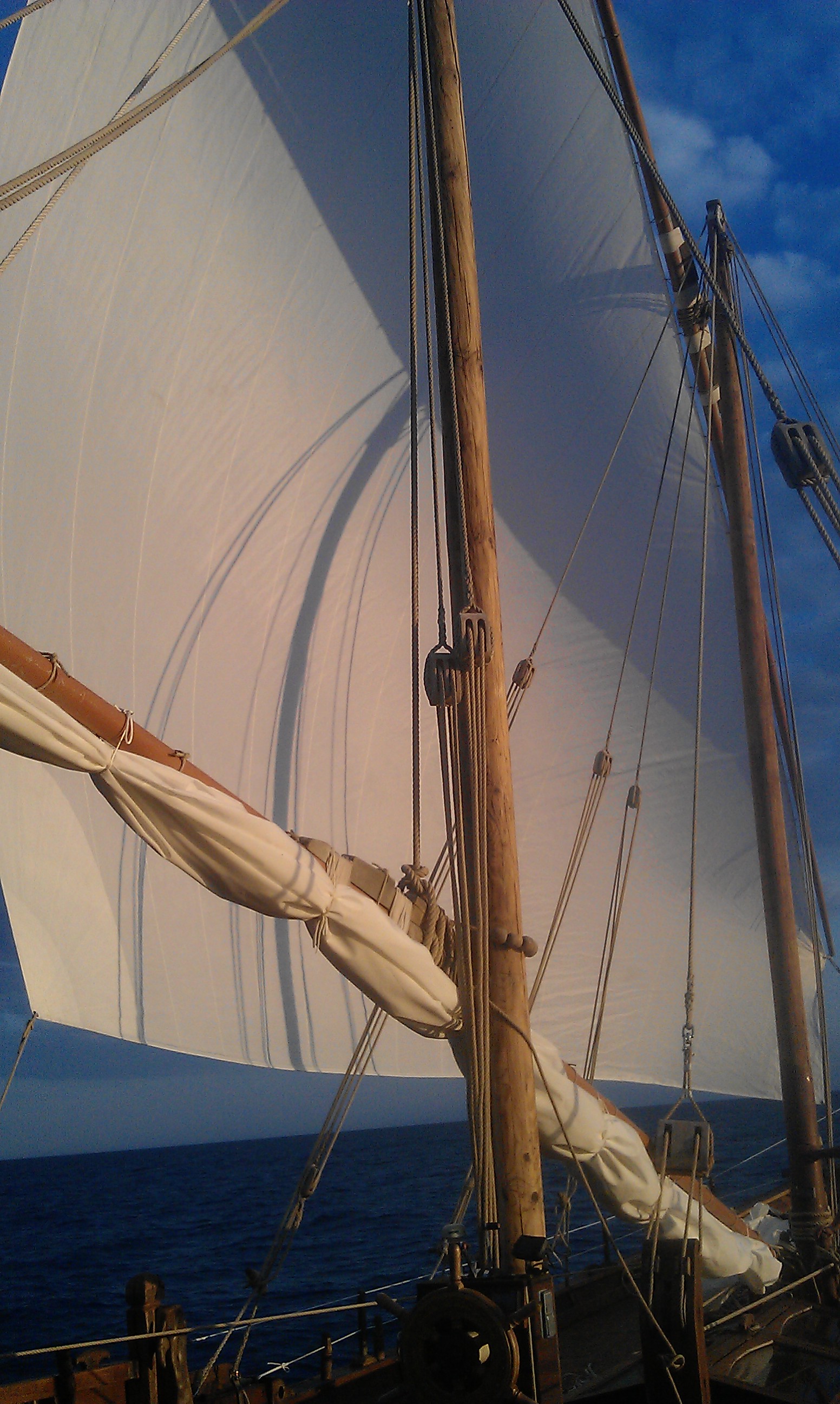Nouvelles voiles. On croirait des ailes d'avion. Le bateau decolle au moindre souffle.